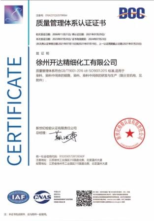 公司所生產(chǎn)的“四菱牌”系列環(huán)保型低重金屬還原染料連續(xù)多年被認(rèn)定為“江蘇省著名商標(biāo)”、“江蘇省名牌產(chǎn)品”;并通過(guò)質(zhì)量(ISO9001)、環(huán)境(ISO14001) 和職業(yè)健康安全(GB/28001)管理體系認(rèn)證和江蘇省計(jì)量保證確認(rèn)。