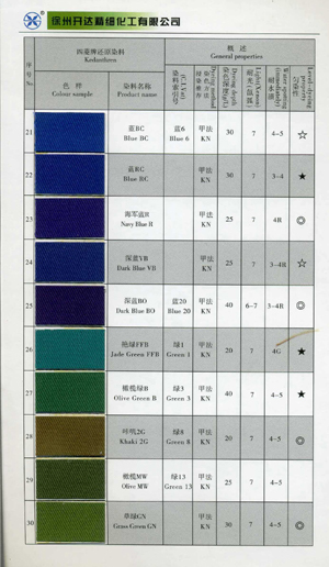 Shade Cards/Continuous Dyeing