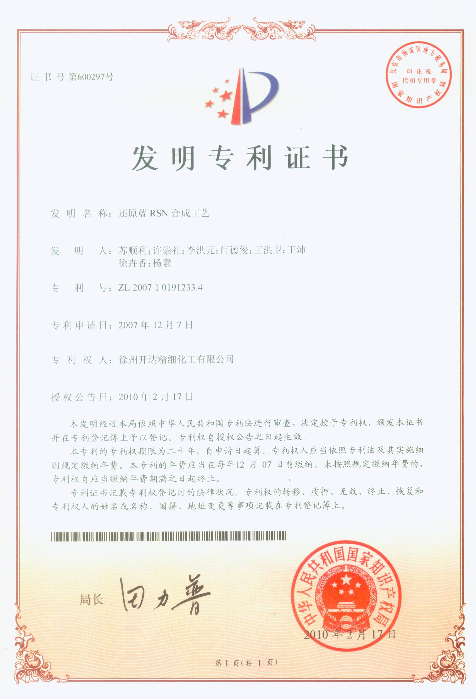 patent of the new synthetic process of Blue RSN