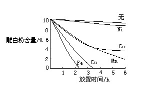 在配漿時,色漿中不能混入諸如Fe、Cu、Co、Ni之類的金屬鹽,否則會促進雕白粉的分解,特別是混入Fe和Cu離子,分解更嚴重。印花配漿最好使用塑料容器,同時注意水質(zhì)中金屬離子的含量。調(diào)制好的印漿應(yīng)加蓋聚乙烯塑料薄膜,與空氣隔離,不可在陽光曝曬,最好存放在避光陰涼處。金屬鹽對雕白粉的影響見圖2。