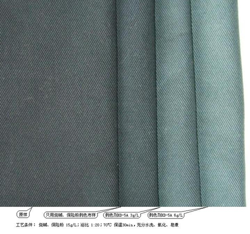 還原染料、硫化染料的剝色可以用相同的方法,但硫化染料的剝色需要更多的堿和保險(xiǎn)粉。